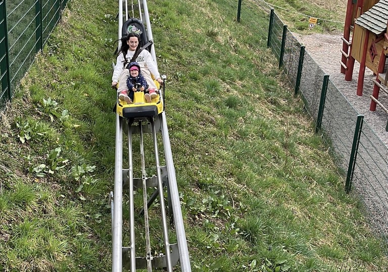 Sommerrodelbahn, Kletterwald, Kletterlabyrinth, Holzkugelbahn und Abenteuerspielplatz